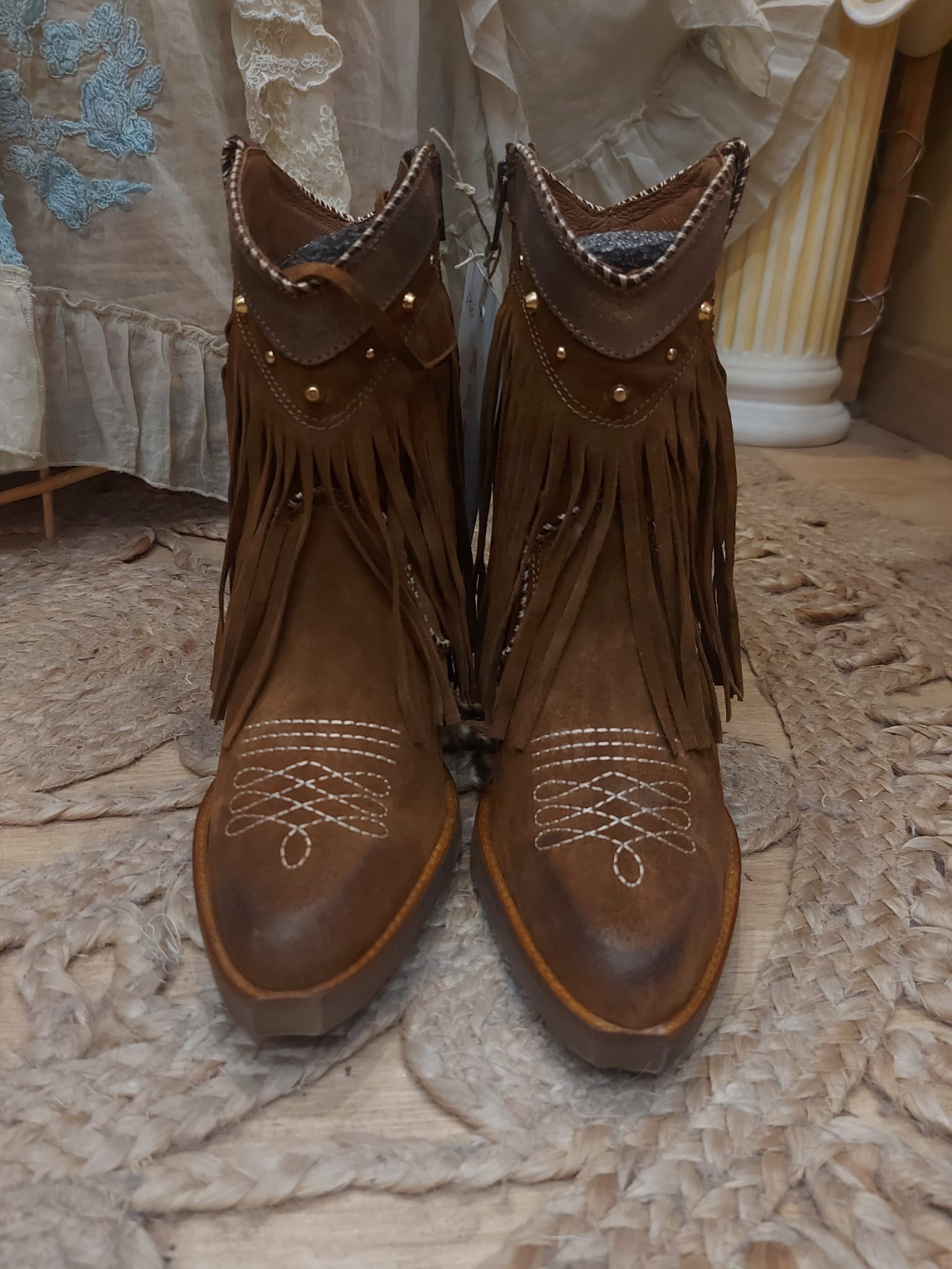 ¿Buscas ese calzado que hable por ti antes de que digas una palabra? Estos botines no solo caminan, ¡tienen actitud propia! Con un rollo boho-chic irresistible y un toque vanguardista, son el complemento perfecto para las que no se conforman con lo básico.