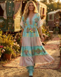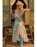 ¡Prepárate para sentir el flechazo! Este no es solo un vestido, es la pieza que estabas buscando para tus días de sol y libertad. Con un tono turquesa, súper refrescante, este maxi vestido de estilo campestre es una explosión de color y detalles hechos con mimo.