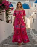 Diseñado y confeccionado completamente a mano, se convertirá en tu vestido favorito. Su caída, su naturalidad y su estilo bohemio te enamorarán al instante. El vestido Santorini rose, en color rosa fuerte, combina a la perfección un precioso bordado floral con detalles de ganchillo que irradian elegancia y un toque bohemio desde cualquier ángulo. Con cintura elástica y borlas ajustables que realzan tu figura, esta obra maestra te sentará de maravilla y acaparará todas las miradas. ¡Combínalo con cuñas y joyas llamativas para una noche de fiesta!